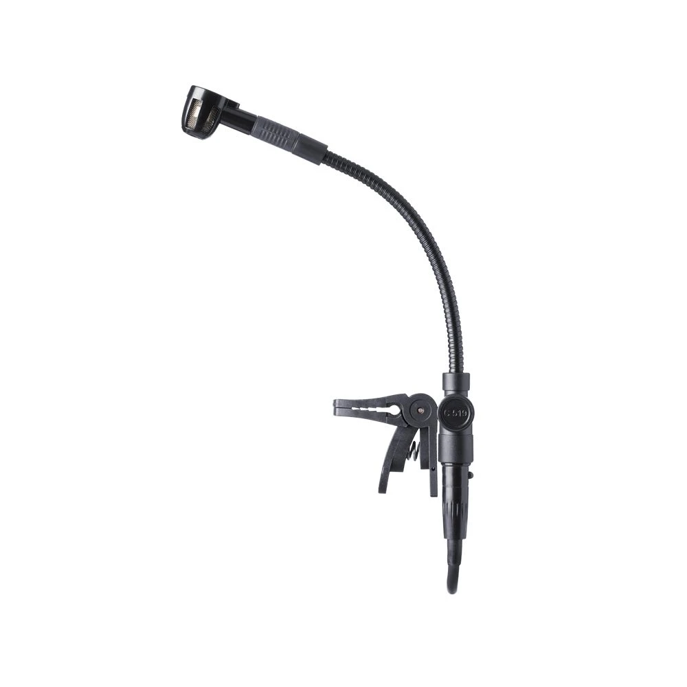 The C 519 clips onto the bell of a trumpet, saxophone, trombone, tuba, or any other wind instrument (e.g. didgeridoo). Room to move for the wind section at last! Its tight cardioid polar pattern makes the C 519 an ideal tool for use near monitor wedges, and its flat frequency response delivers a natural, powerful, and clear sound.