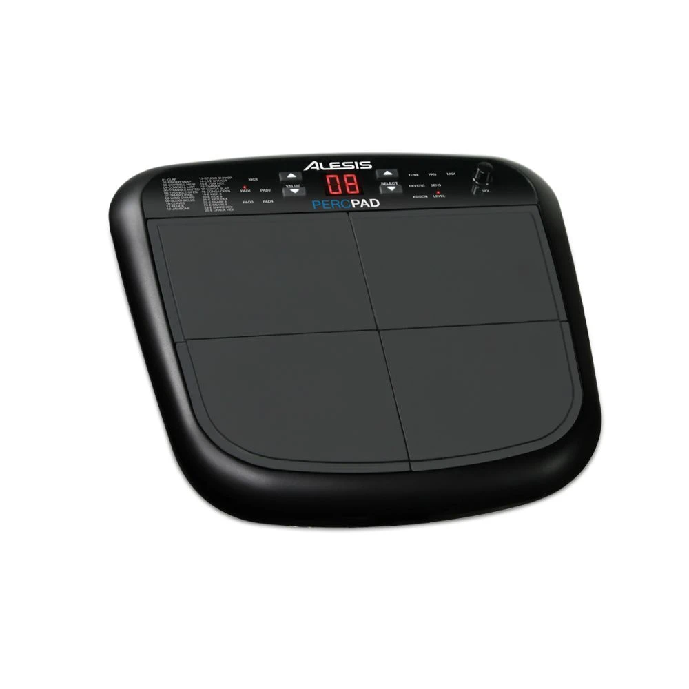 Alesis PercPad is packed with drums, percussion, and electronic sounds to enhance your performances. Since it’s so compact, the PercPad easily fits into any drumming setup. It offers four velocity-sensitive pads plus a kick input, so you can creatively work it into your existing set-up.. In fact, the PercPad mounts right on a standard snare drum stand, though it’s just as convenient on a table (or regular drum stand or rack, using an optional mount). Most importantly, though, the PercPad sounds great. It offers a fine-tuned selection of acoustic and electronic drum and percussion, with a range of world sounds and others that are completely editable – and easy to assign to any pad. A MIDI connection makes the PercPad ready for your MIDI module or comptuer setup too!