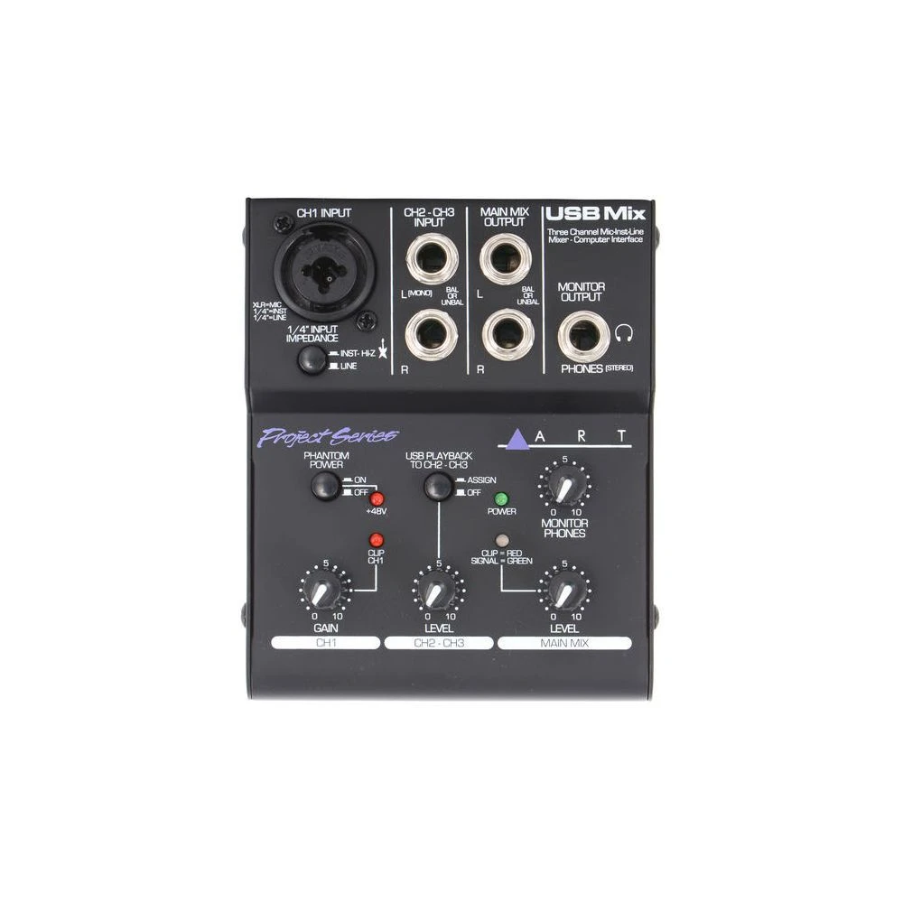 The ART USB Mix Three Channel Microphone, Instrument, and Line Mixer / Computer Interface is a compact versatile audio interface for your computer that converts analog signals from a variety of audio sources to USB Audio. The USB Mix provides a great starting point for personal home studio recording or for anyone wanting to do mobile location recording.