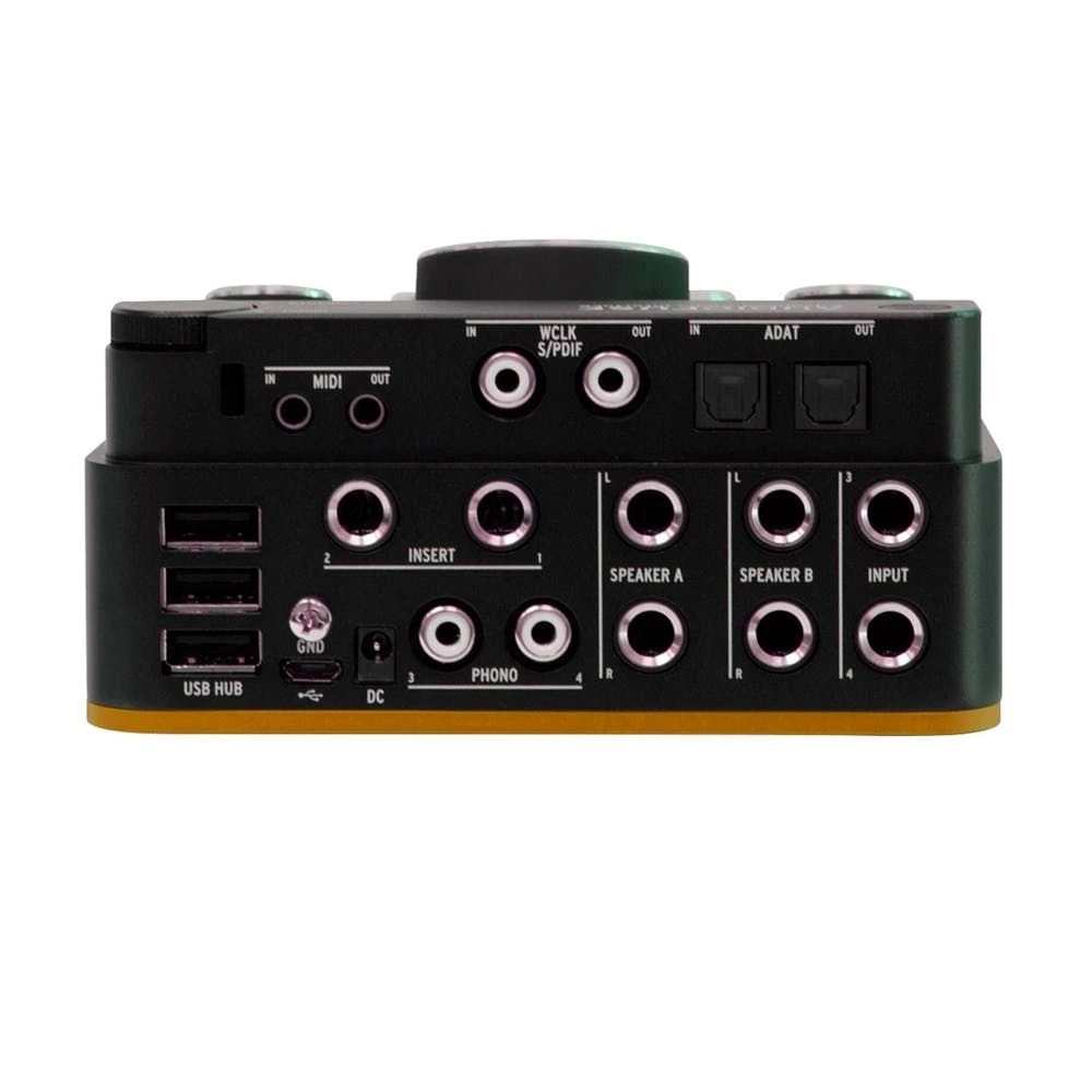 - 4 analog inputs: 2x Mic/Instrument/Line (XLR / 1/4″ TRS), 2x Phono/Line (RCA / 1/4″ TRS)