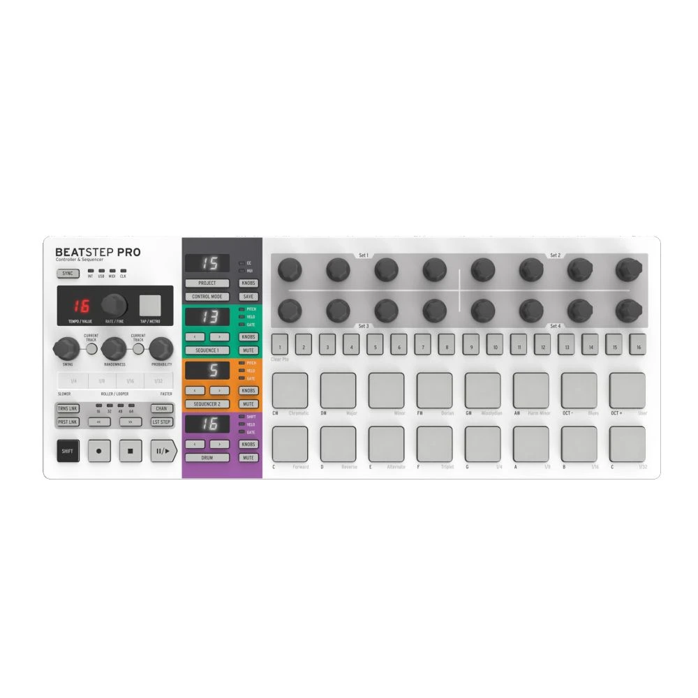 Not only does Beatstep Pro feature a powerful array of MIDI assignable functions, but it serves as a versatile studio hub to interface between synths, keyboards and software. Whether you work with MIDI, USB, CV/gate or DIN sync gear, BeatStep Pro is all about no limits and total creative control. Manage a full performance, control software instruments, analog and digital synthesizers, drum machines and iPad apps, all from the BeatStep Pro.