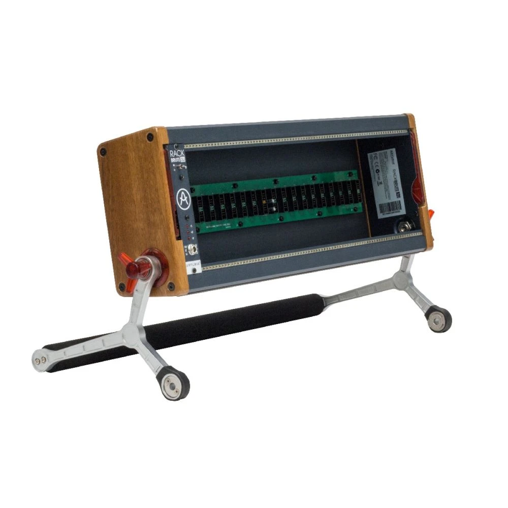 RackBrutes can be combined in many ways, used at multiple angles, and can fold down for convenient transportation. The cases are high-powered and feature extensive internal connectivity, to house a healthy module collection without running out of power, or sockets.