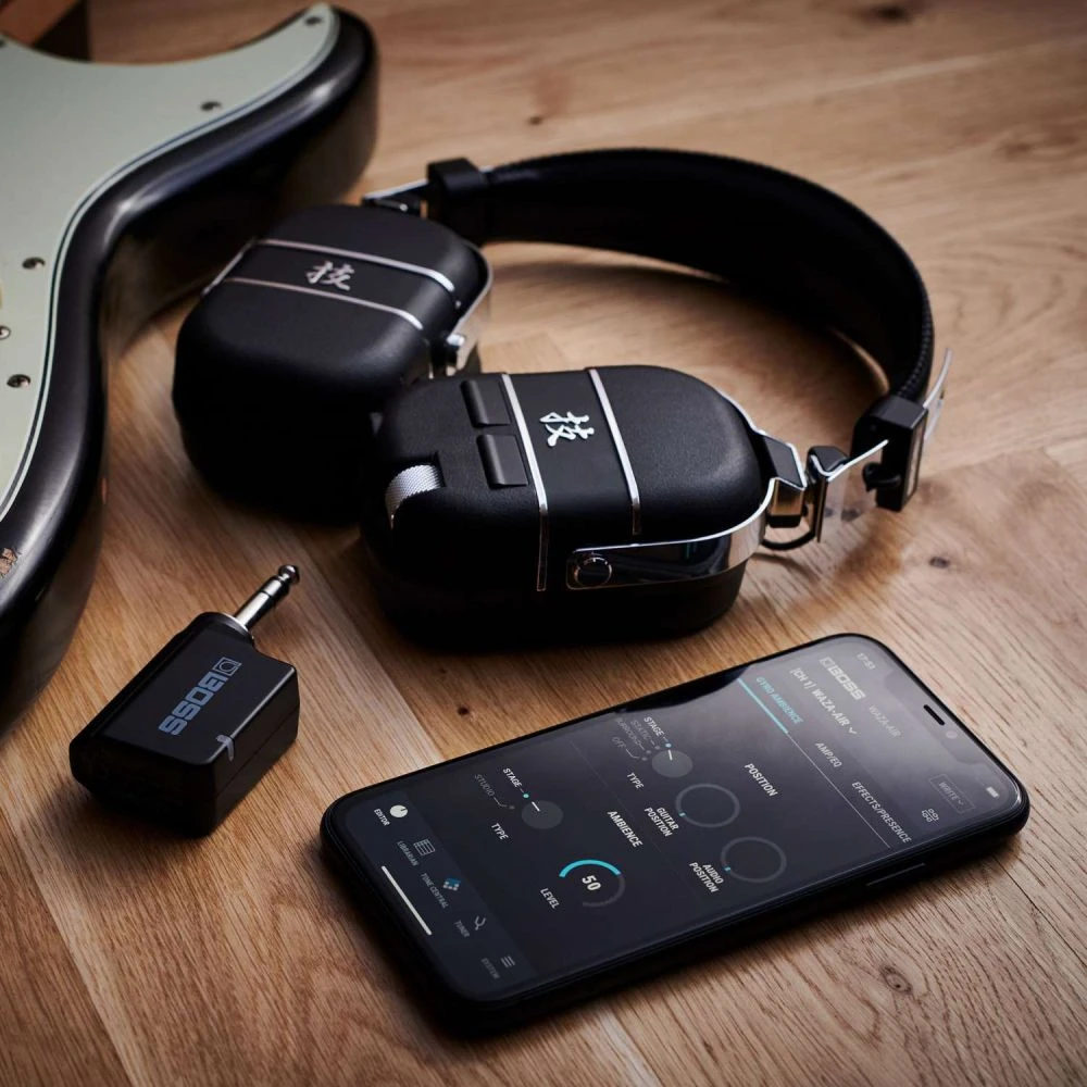 The Boss Waza-Air headphones use a gyro sensor and moving 3D space to create an amazingly realistic “amp-in-room” tone for a natural guitar playing experience anywhere, any time.