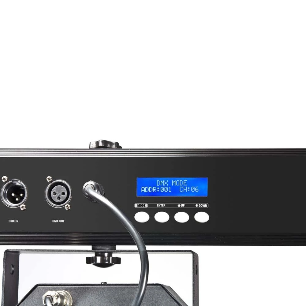 The Cameo PAR 1 is installed with 3-pole XLR inputs and outputs to enable it to be integrated through the DMX with 6, 9 or 15 channels. Alternatively, the unit can be prompted by an optional 4-Way footswitch. The Cameo PAR 1 also works in standalone mode, with a microphone for sound control built into the support bar.