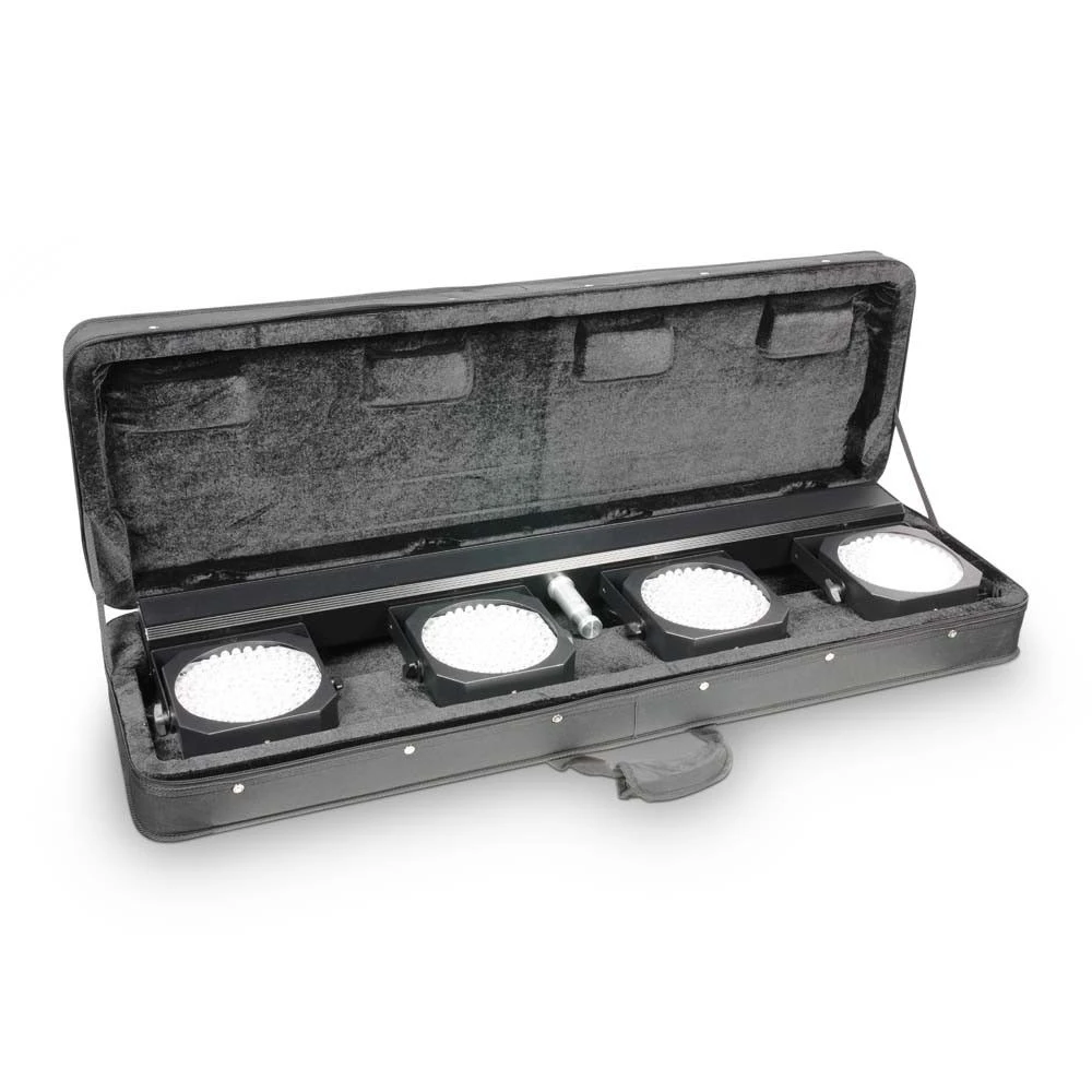 The four compact flat cans mounted on a bar with integrated control make the Cameo Multi PAR 1 the ideal entry-level kit for on-stage lighting. Each of the four flat cans are installed with 108 ultra-bright 10mm RGB LEDs, producing awe-inspiring brightness and sublime colour integration.