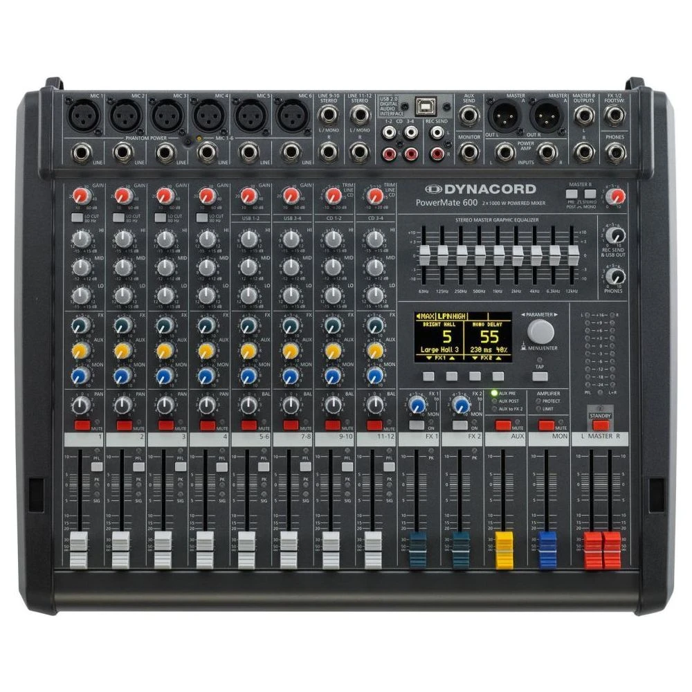 Performance without compromises: intuitively operated mixing section; 2 editable digital effects devices with 100 presets each and 20 user memories each; professional 4xIN / 4xOUT digital interface (USB) for the connection of a PC or Mac; stereo equalizer in the master section; large, contrast-rich OLED display; and a class-D high-performance power amplifier delivering 2 x 1,000 watts RMS into 4 ohms. Exclusively high-quality brand components have been used; all faders and potentiometers are supplied by ALPS.