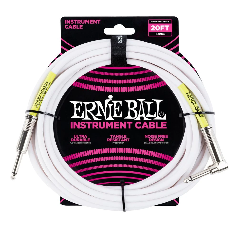 The Ernie Ball 20ft straight/angled instrument cable in white boasts a high quality design made with superior components.