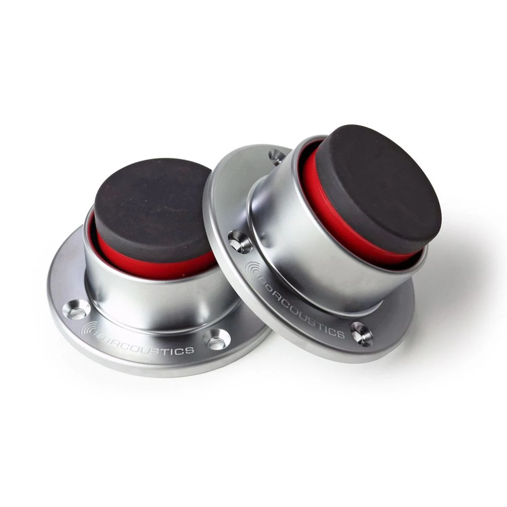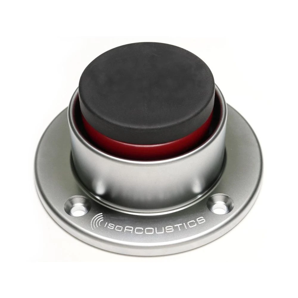 The isolators manage the energy of the speaker to reduce vibrations resonating through the supporting surface to eliminate dissonant sounds in the listening area or joining rooms.