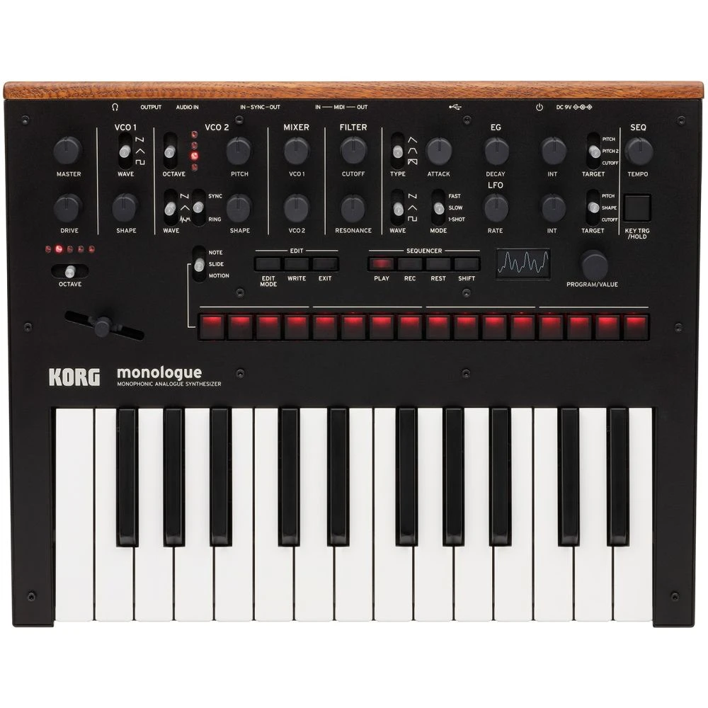 Korg Monologue â a next-generation monophonic analogue synthesizer, seen here in an awesome black finish.