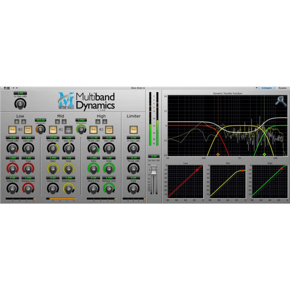 Multiband Dynamics is a plug-in that allows you to add clarity, warmth and punch to your mix. It shapes timbral quality of your audio by running it through a three-band crossover, and providing independent compression in each frequency range before summing the result through a limiter. Without compression, you can broadly shape the timbre of your tracks, and if you need dynamic range control or dynamic EQ, simply enable the compressor for the band.