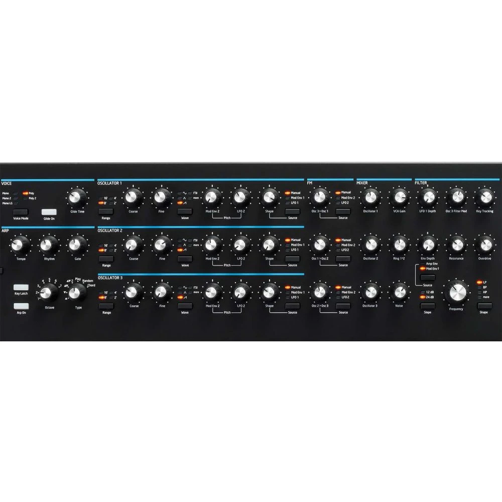 - Digital / Analogue Hybrid with Subtractive, Wavetable or FM Synthesis