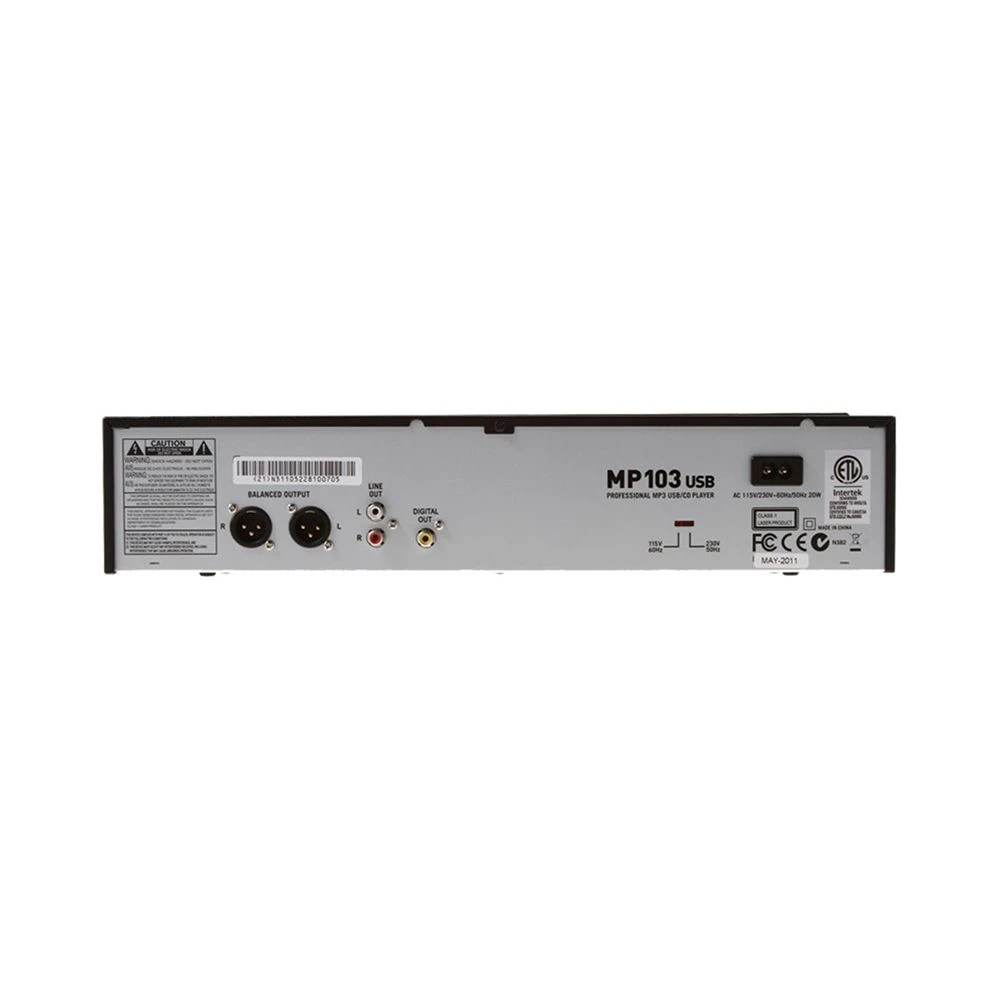 The MP103USB is rack-mountable and designed for professional DJs and installations. Thousands of songs can be loaded from a computer onto a USB flash or hard drive. The MP103USB’s USB input allows you to put your entire digital music library on a USB flash or hard drive and perform with it at a gig. If you are a DJ transitioning to using MP3 files, the MP103USB is ideal because it allows you to still use your entire library of CDs or MP3 CDs while giving you more options for using digital media.