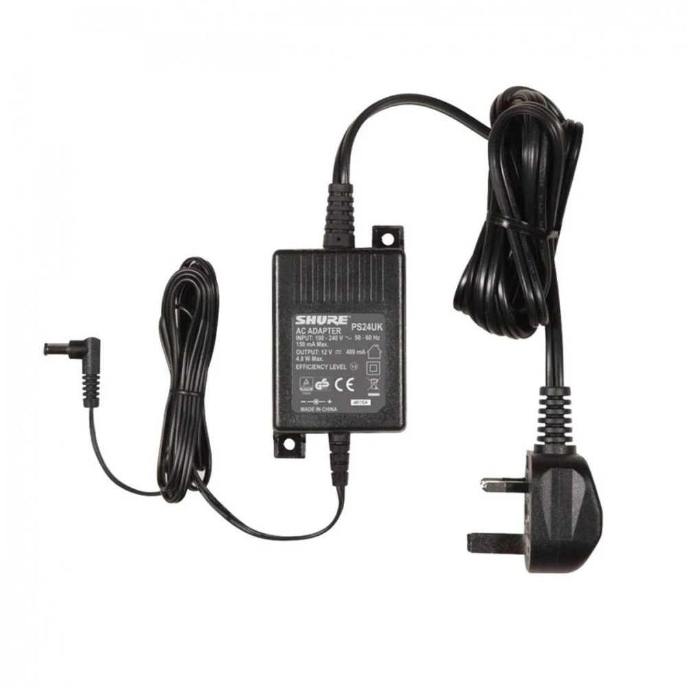 The Shure PS24uk Power Supply is an energy-efficient external switching mode 12V DC power supply, for use with: