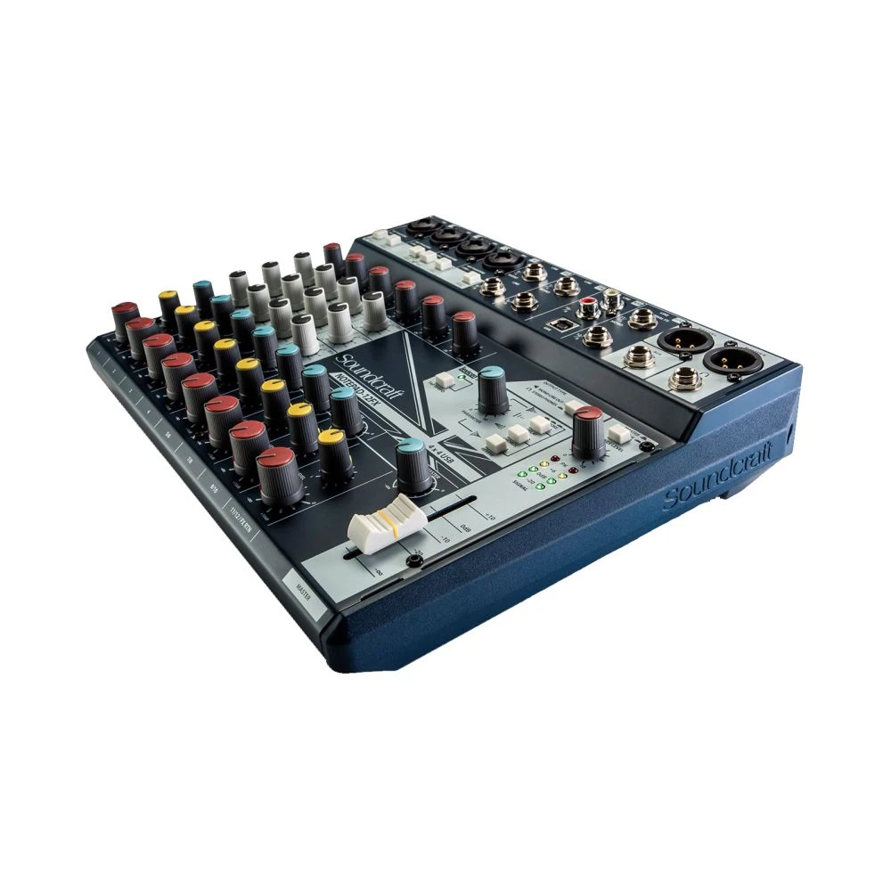 The Soundcraft Notepad-12FX 12 channel mixer combines professional-grade analog components, renowned HARMAN digital signal processing and a built-in USB audio interface to use with your favorite Mac or PC editing software.