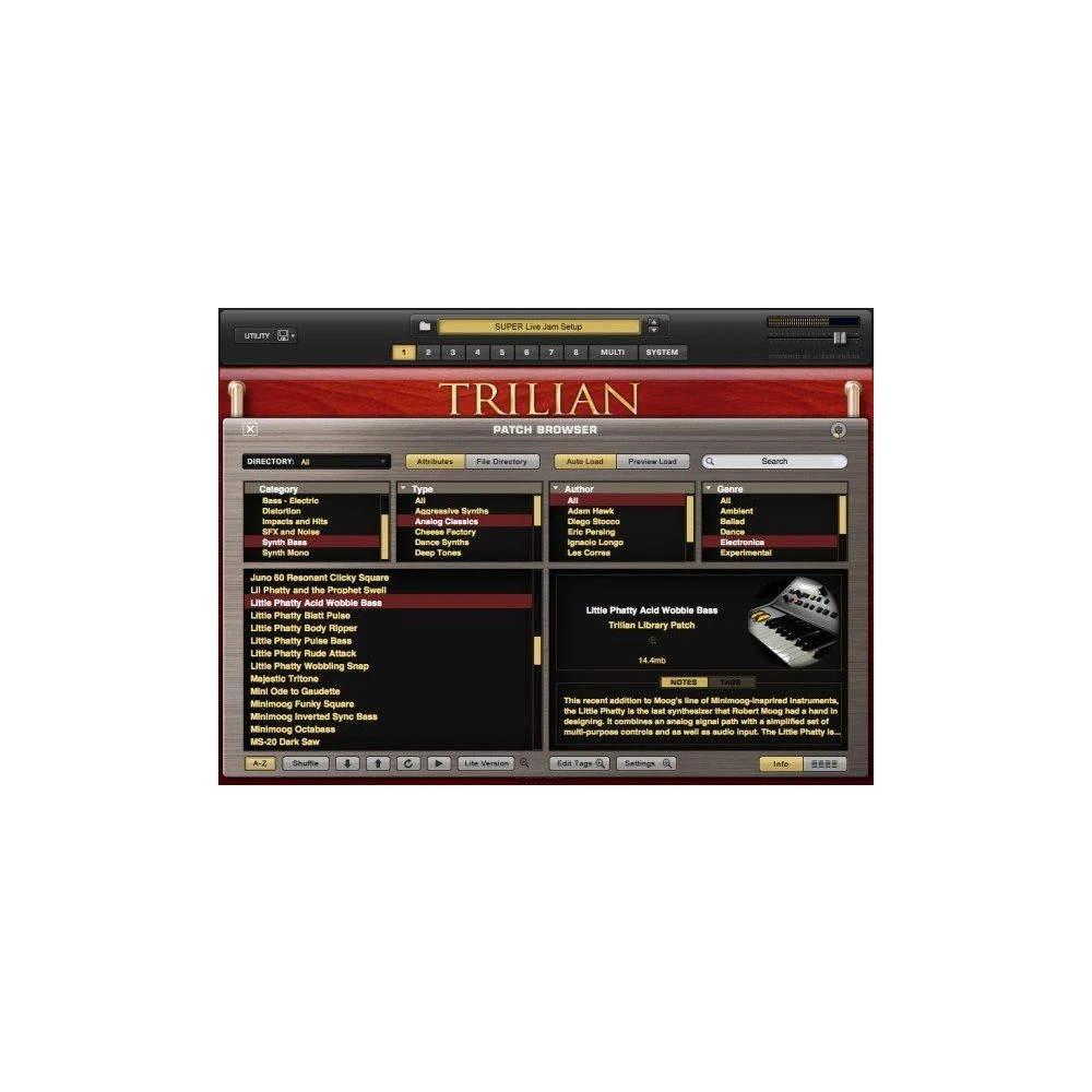 Trilian is designed from the ground up to be the most versatile bass virtual instrument available today with a new level of expressive, real-time performance for acoustic and electric basses – plus cutting-edge synth bass tones with powerful editing and extraordinary sound quality.