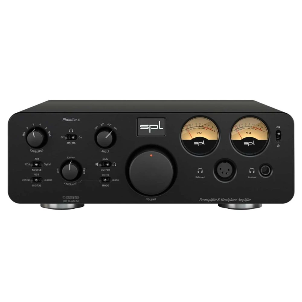 The SPL Phonitor X Headphone Amplifier and Preamp, seen here in Black, stands as the ultimate headphone amplifier that bridges the realms of professional and consumer audio. It serves as a versatile tool, capable of being utilized for audio engineering tasks like mixing and mastering on headphones, as well as being a valuable component of a desktop Head-Fi listening system.