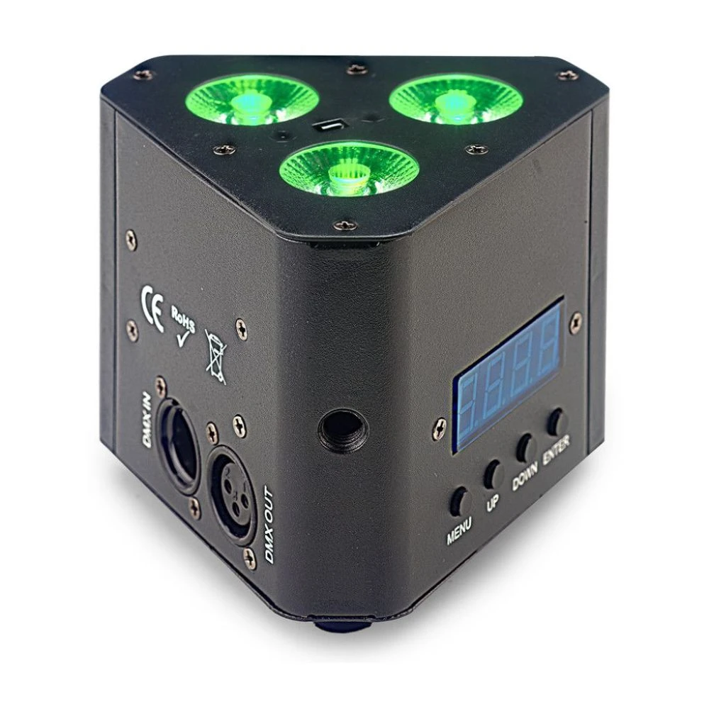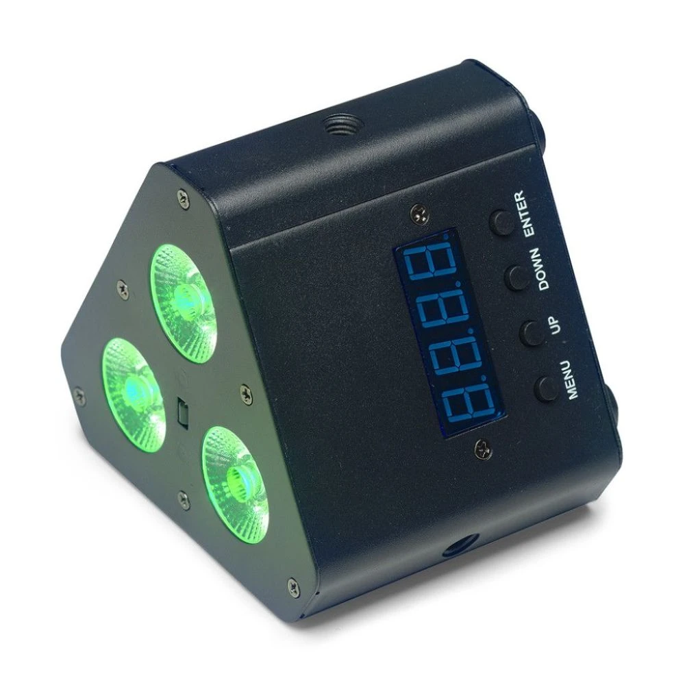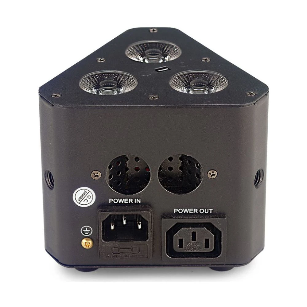 Boasting 3 individual 4 watt lights, choose from a range of pre-set functions such as strobe, auto, sound control, slave and remote control to ensure you’re getting the most out of every performance and light up your triangle trussing system.