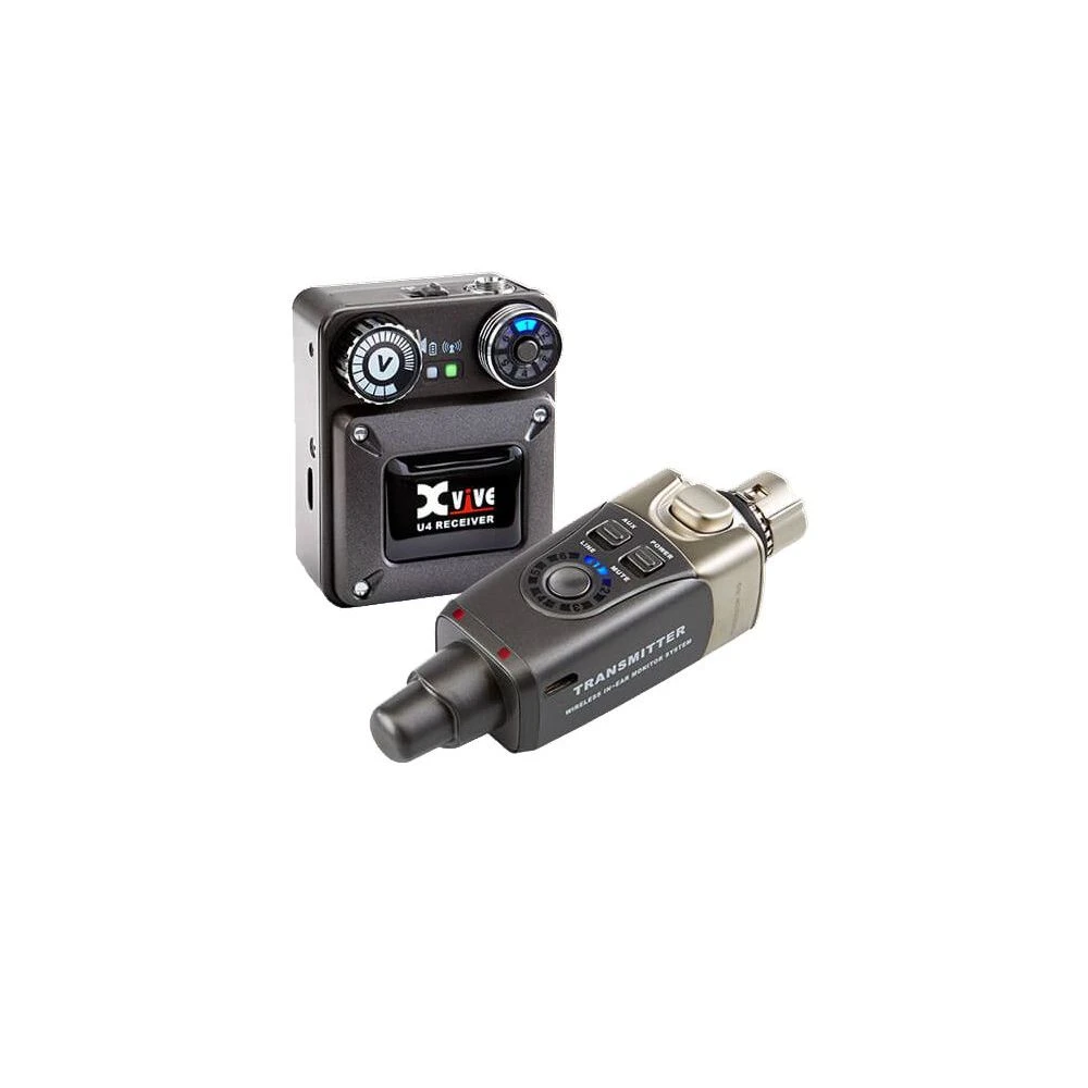 2.4Ghz wireless in-ear monitor system Includes 1 transmitter and 1 receiver Send audio wirelessly to performers on stage 90 feet range XLR_Male input Slim, lightweight bodypack attaches easily to a belt or guitar strap Less than 5ms latency, simultaneuous broadcasts on 6 channels Provides clear detailed audio at any volume Plug and play, focus on the performance All metal receiver 5 hours battery life (rechargeable battery for both transmitter & receiver Headphones not included)