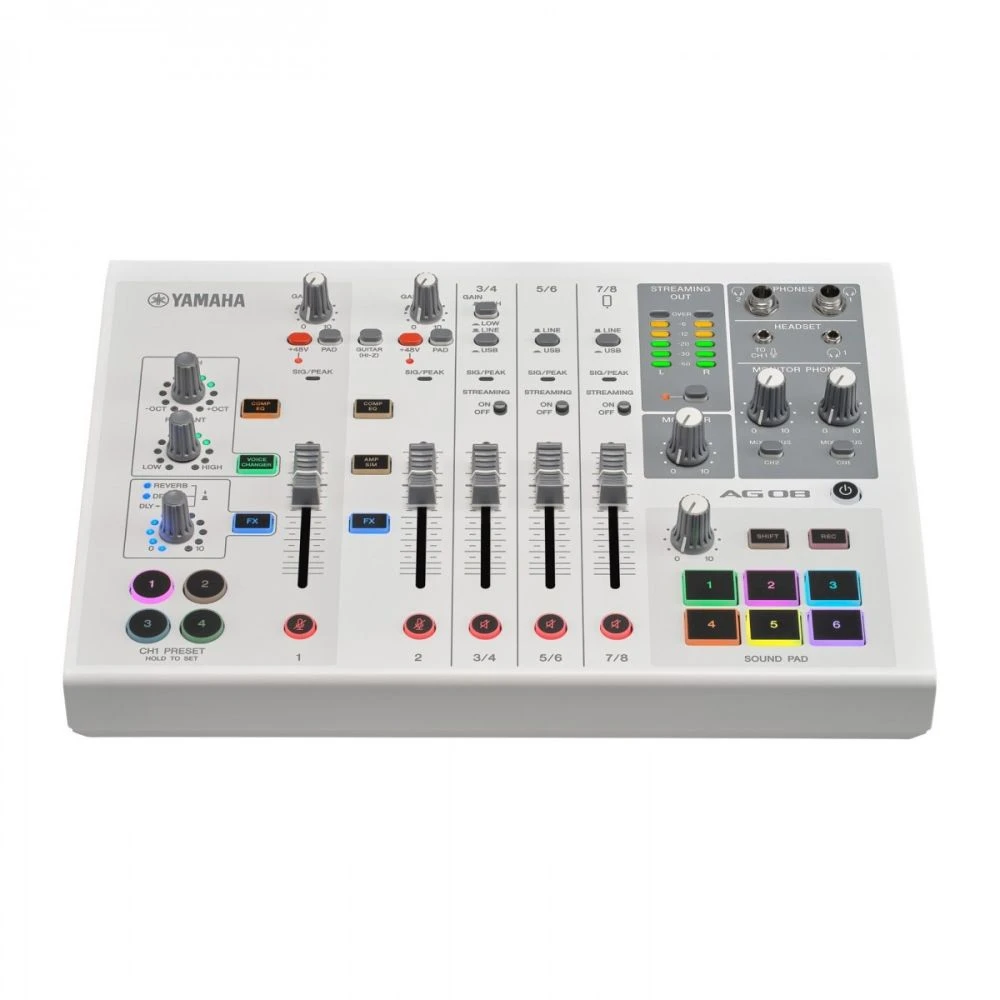 Supplying a vast functionality that’s perfect for live streamers and other audio creation such as podcasts and vlogs, the Yamaha AG08 Streaming Mixing Desk, seen here in White, is an 8-channel live streaming mixer that consists of two phantom power inputs for condenser mics, a built-in USB audio interface, voice changer as well as a sampler. Making it simple to capture professional audio with guests and friends with the push of a button.