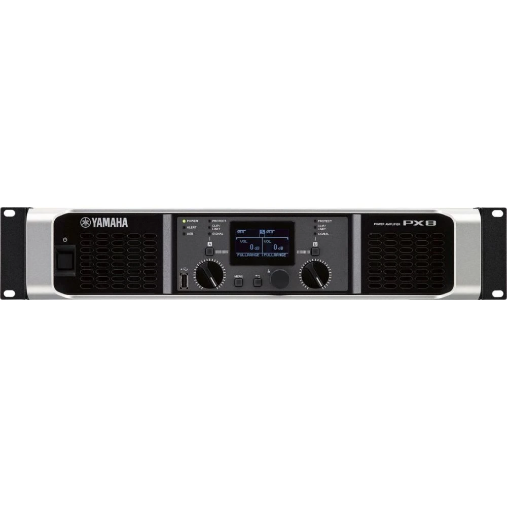 The Yamaha PX8 Power Amplifier is a 2 x 800 watt quality engineered Class-D amplifier that features PLL technology that controls transfer characteristics in real time producing a powerful and clear sound.