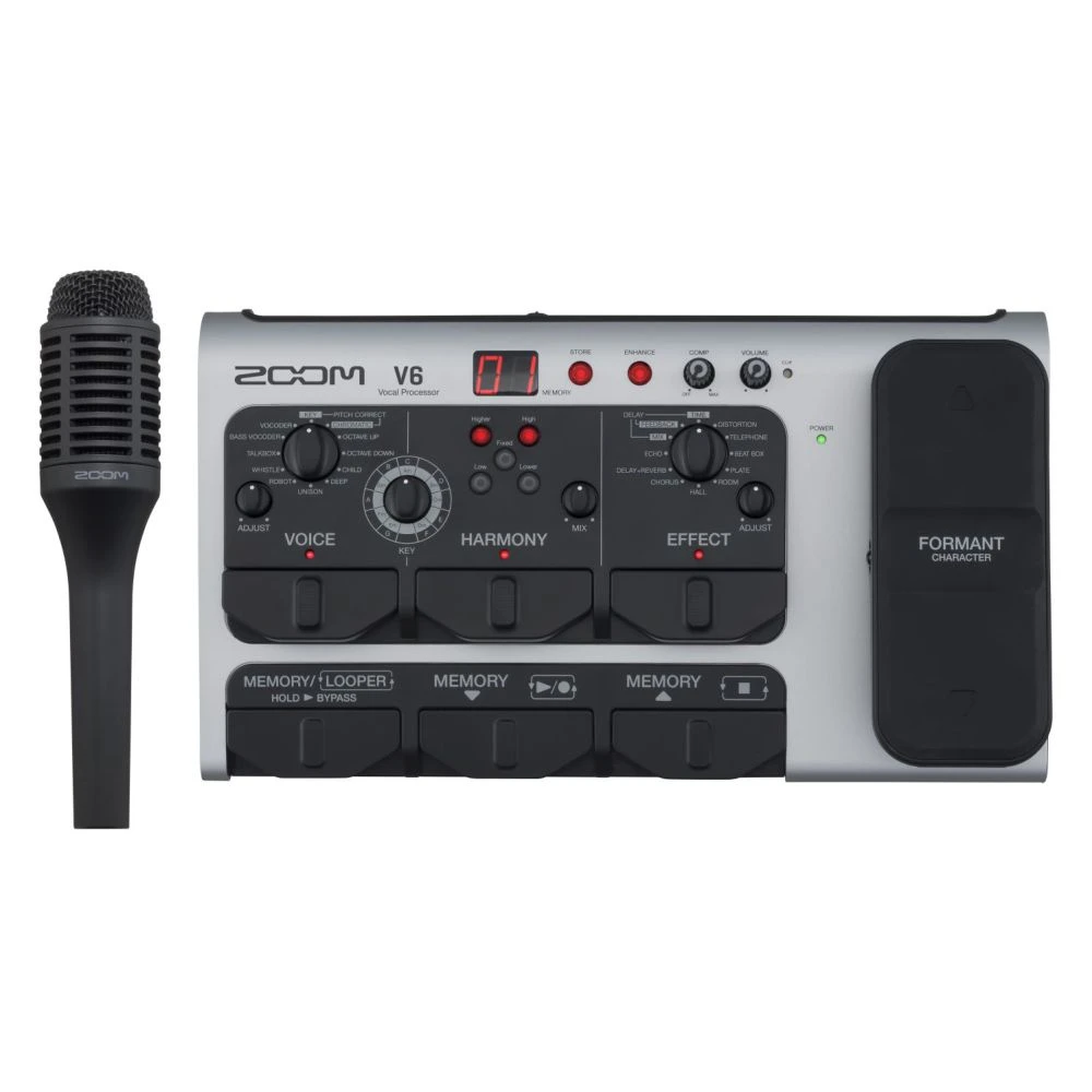 The Zoom V6 Vocal Processor is a dedicated multi-fx pedal for vocalist giving you studio-grade vocal effects in an easy-to-use, highly customisable, stage-friendly unit.